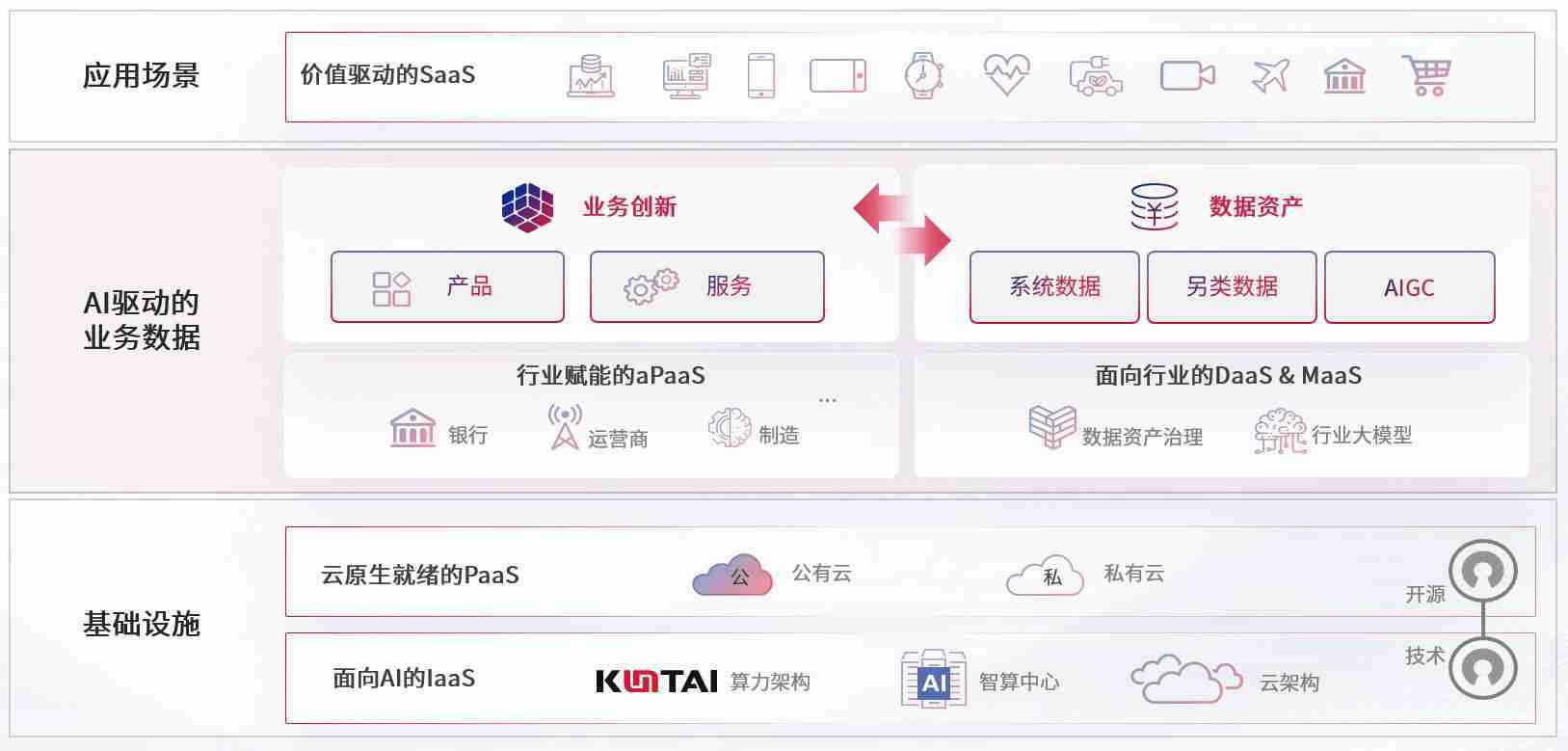 数字时代,,,,围绕企业数字化转型的关键要素,,PA国际厅数码开创性的提出数云融合战略和技术体系框架,,,,着力在云原生、、数字原生、、AI原生和信创产业上架构产品和服务能力,,,,为处在不同数字化转型阶段的快消零售、、汽车、、、、金融、、、医疗、、、、政企、、、、教育、、、、运营商等行业客户提供泛在的敏捷IT能力和融合的数据驱动能力,,,,构建跨界融合创新的数字业务场景和新业务模式,,,,助力企业级客户建立面向未来的核心能力和竞争优势,,,全面推动社会的数字化、、、、智能化转型升级。。